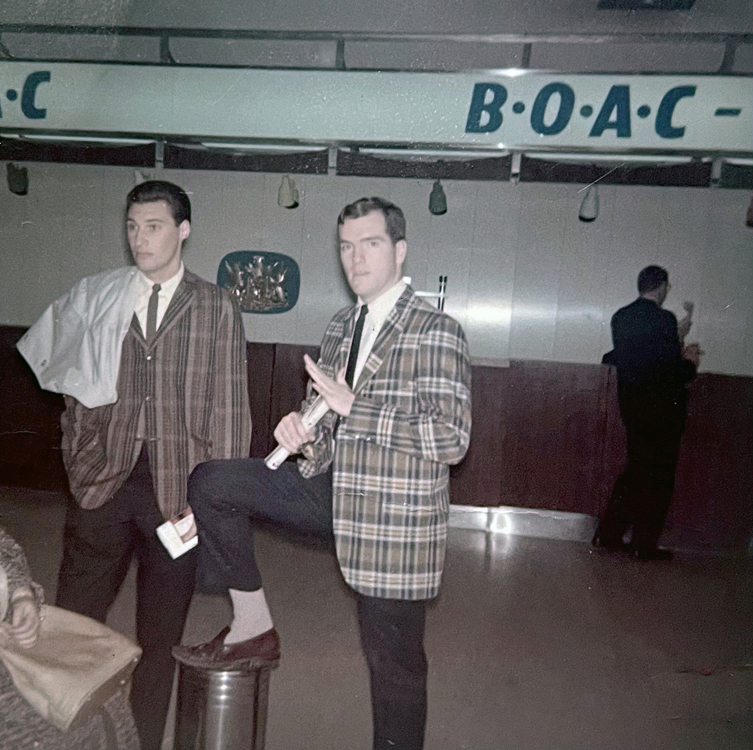 The man on the left, with the suit-bag over his shoulder, looking like he’s trying out for a part in The Godfather is my dad.