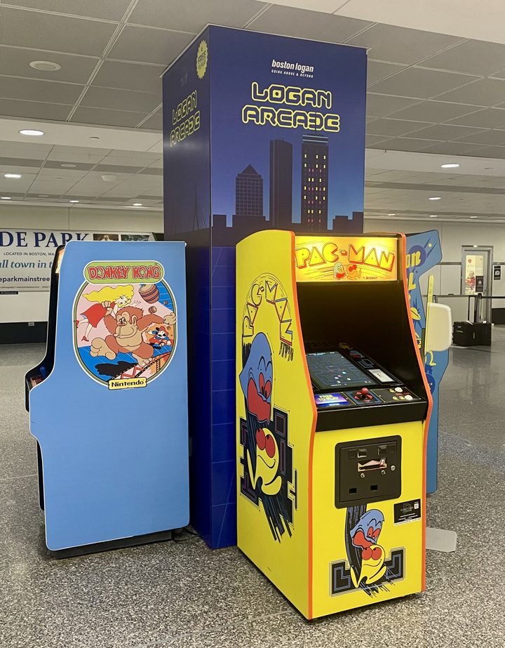 I don’t know if this is permanent or not, but in baggage claim at Boston’s terminal A they’ve set up this vintage arcade with 1980s-era video games. Gen-Xers can relive their younger days with some Pac-Man and Donkey Kong.